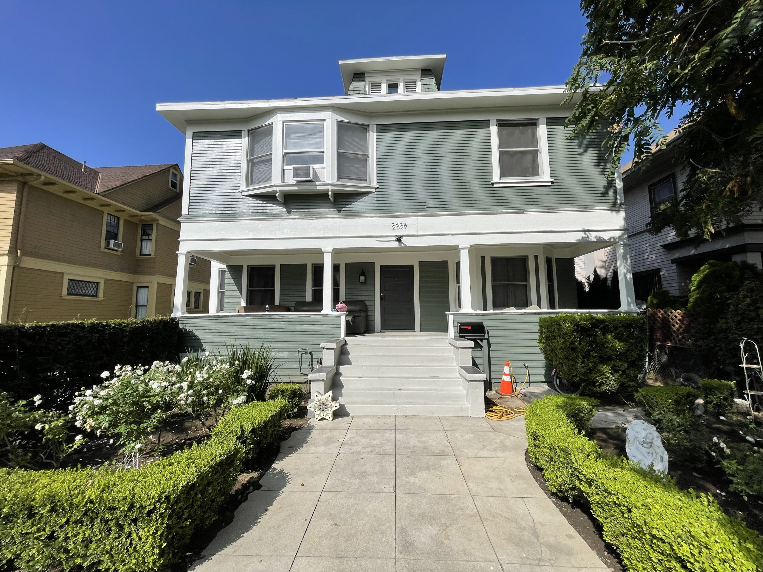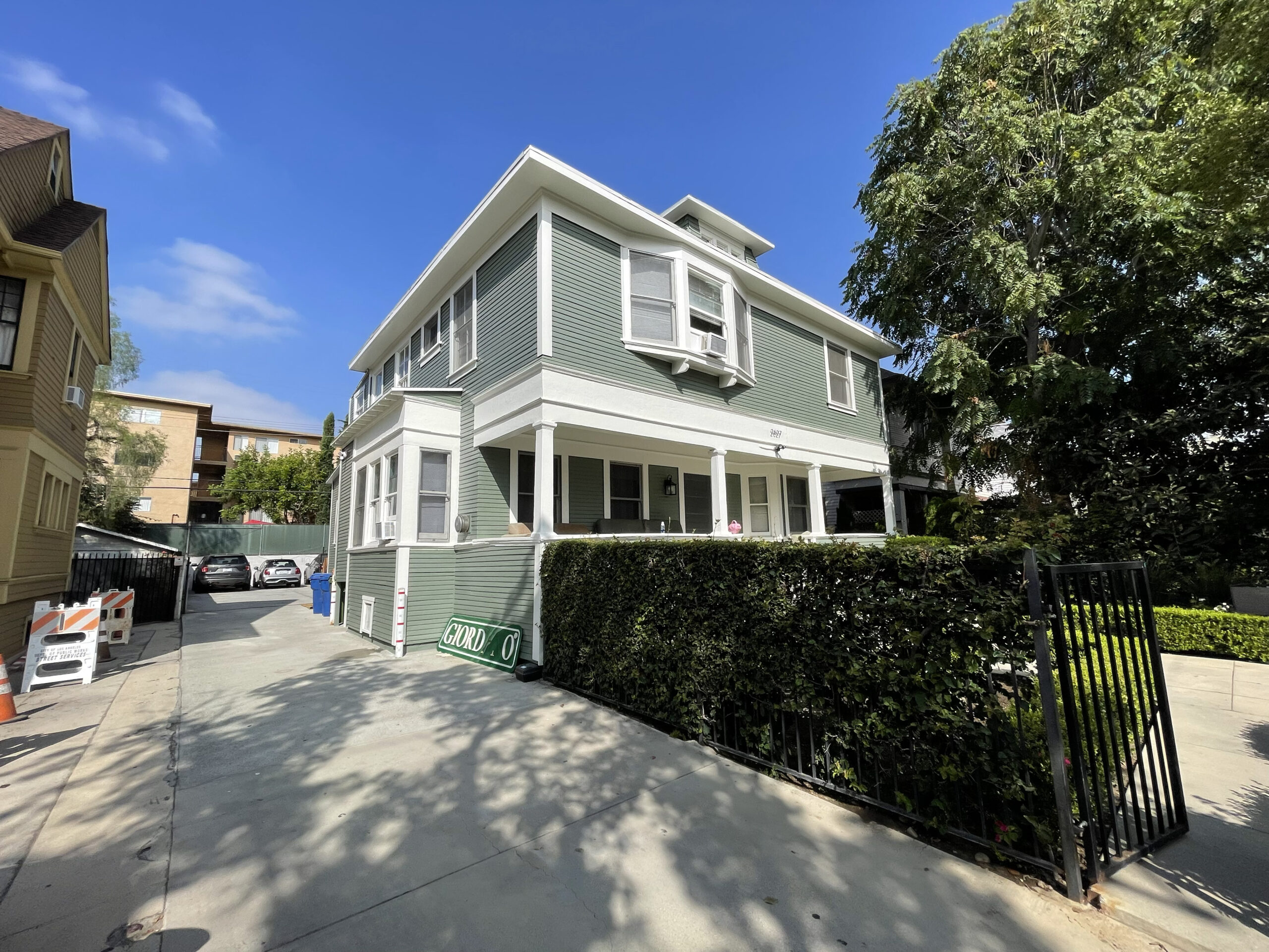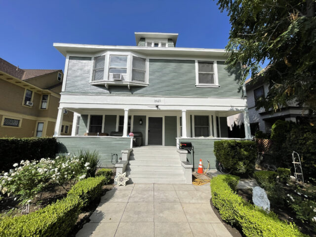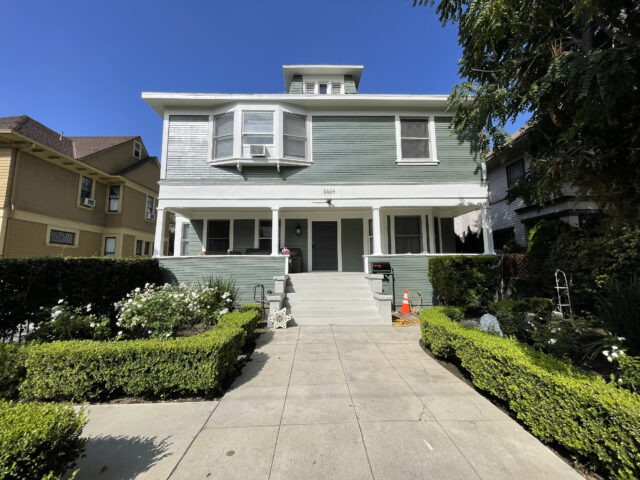 2627 Orchard Ave is located in the residential neighborhood of the University of Southern California on the north block to campus. The property consists of nine bedrooms and six bathrooms, hardwood floors and new kitchen appliances. In addition, there are four kitchens within certain units that act as studio accommodations in some of the rooms. The property has a large private driveway with an iron locked gate that leads to a very large backyard and over six parking spaces reserved for residents.